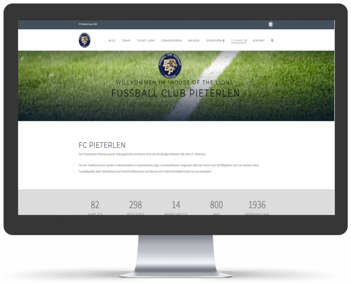 Die Website dient als Visitenkarte für den Fussballclub Pieterlen. Fans und Spieler finden alle wichtigen Informationen auf einen Blick.